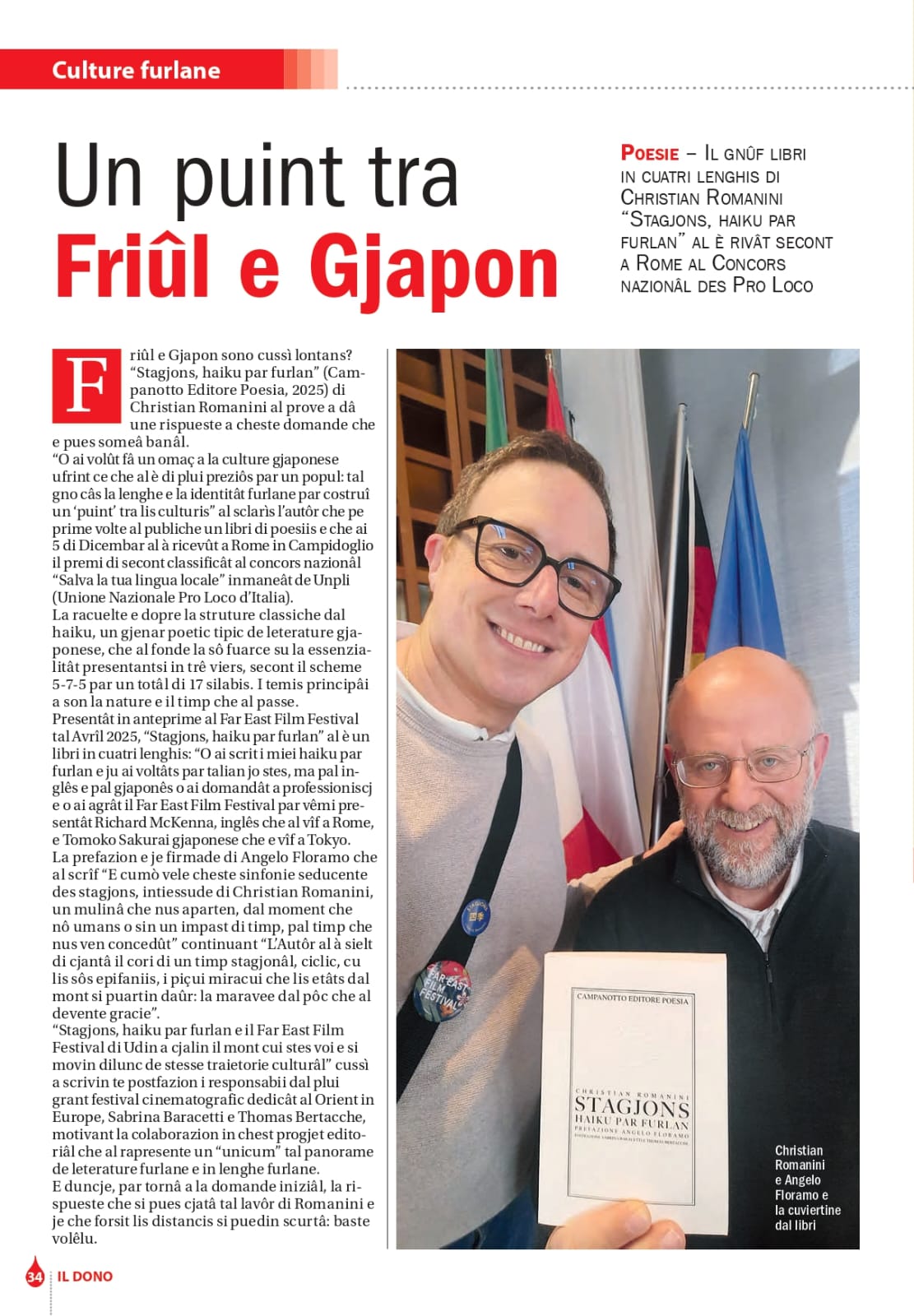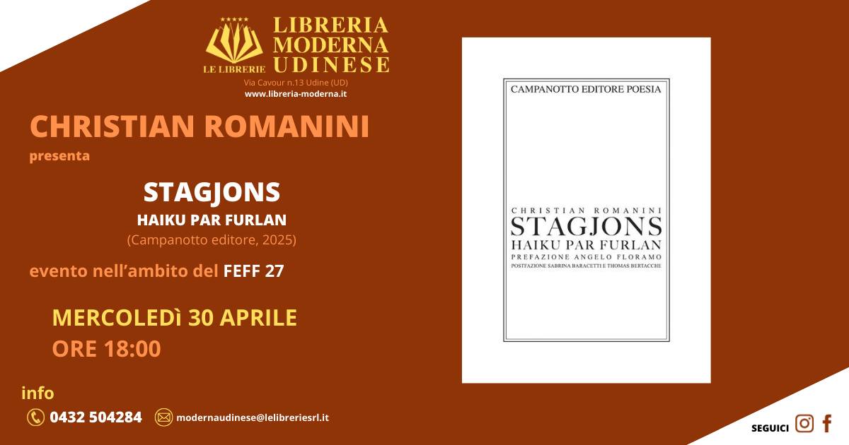 Quella del nostro corregionale @christian_romanini è un’opera che unisce l’Oriente al cuore della nostra regione. Con “Stagjons, haiku par furlan”, Christian racconta il ciclo delle stagioni con la delicatezza degli haiku giapponesi e l’identità della lingua friulana. Un incontro poetico che celebra la bellezza del nostro territorio, della nostra cultura e di chi si impegna ogni giorno per valorizzarla. Complimenti a Christian per questo ponte tra Paesi e culture che è anche il suo esordio poetico.